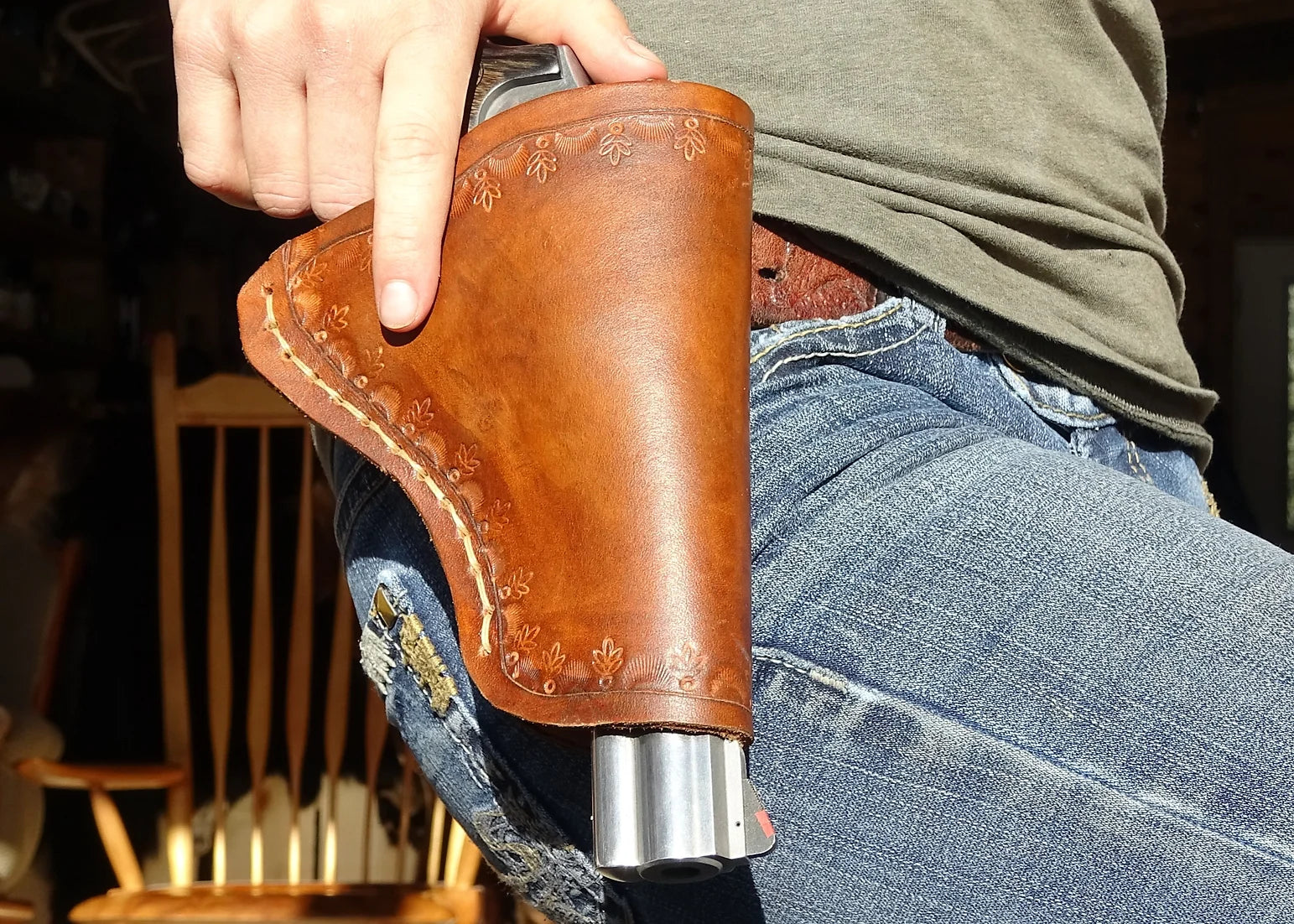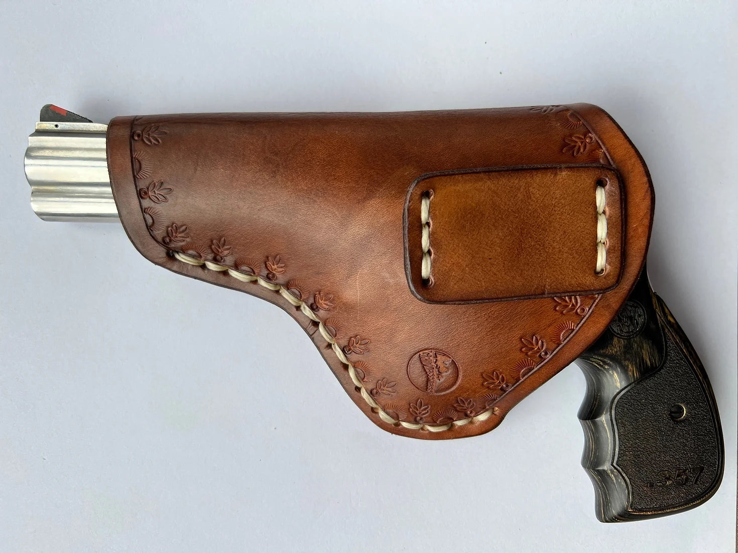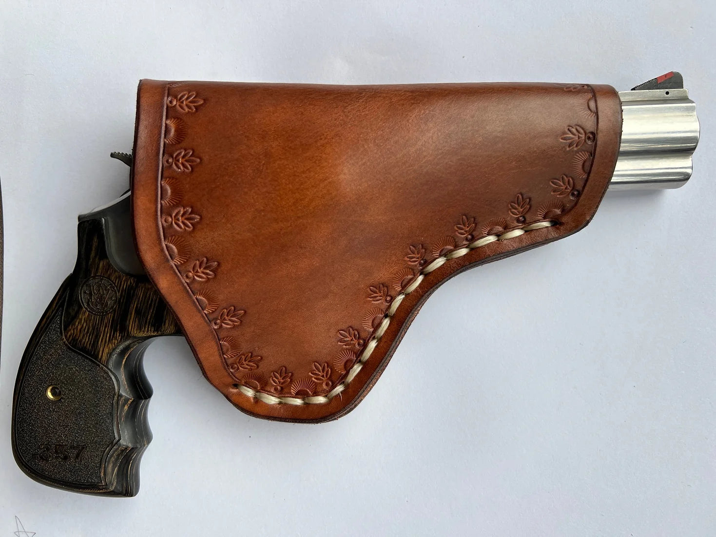 Hand made leather belt holster. Fits Smith & Wesson (S&W) .357 686+, 5" barrel.